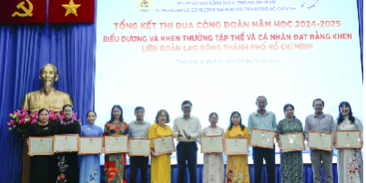 Theo đó, Ban Chấp hành Liên đoàn Lao động TP. Hồ Chí Minh đã tặng bằng khen cho các tập thể và cá nhân có thành tích xuất sắc trong hoạt động công đoàn. Các tập thể được vinh danh gồm: Tổ Công đoàn Phòng Khảo thí và Đảm bảo chất lượng; Tổ Công đoàn Thư viện – Tạp chí Khoa học – Các Trung tâm Đào tạo ngắn hạn; Tổ Công đoàn Trung tâm Đào tạo Từ xa, Tổ Công đoàn Khoa Kế toán – Kiểm toán và Trung tâm Nghiên cứu Phát triển